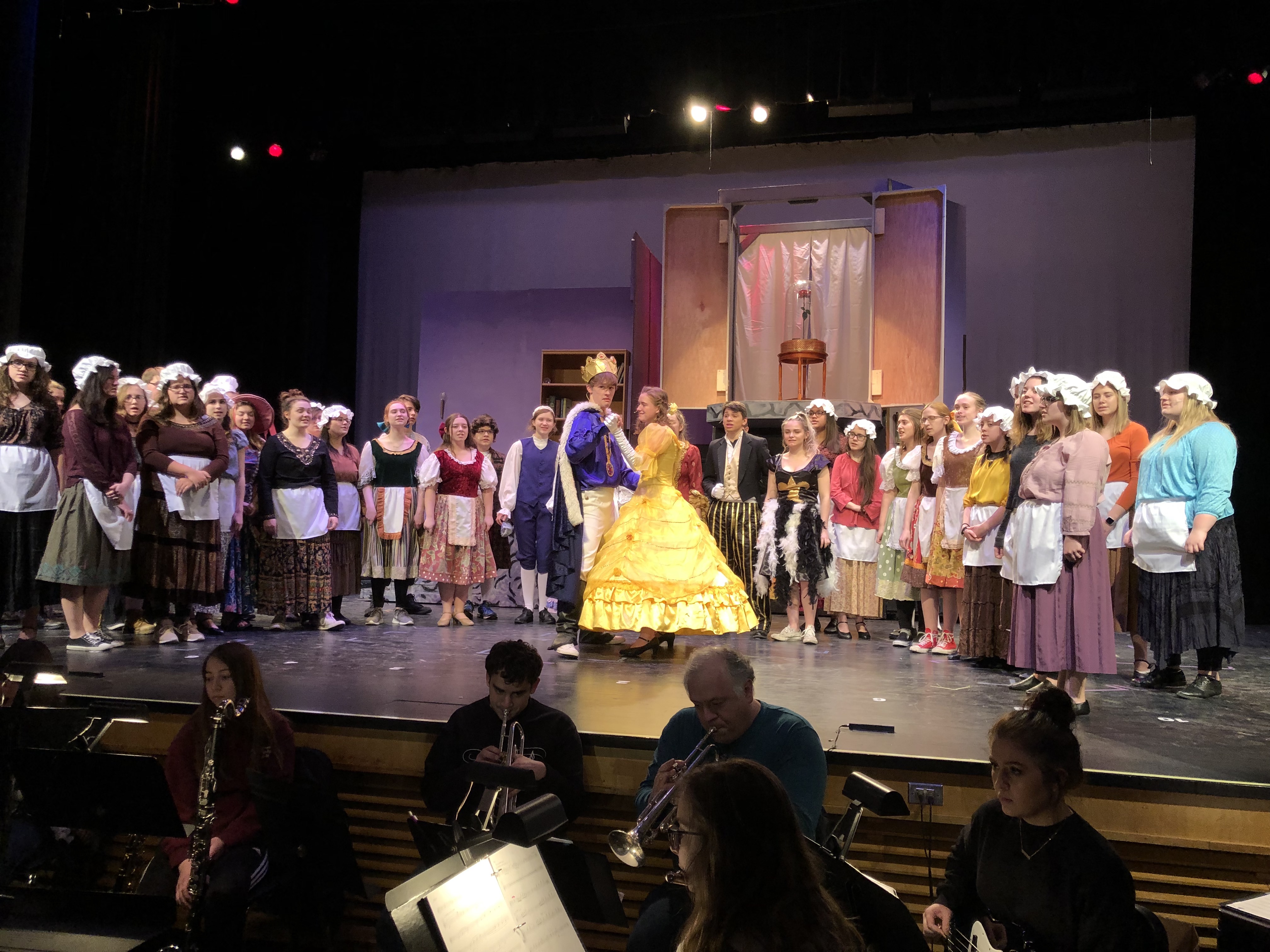 Student Photo - The Cast Rehearsing the Finale of Beauty and the Beast.
